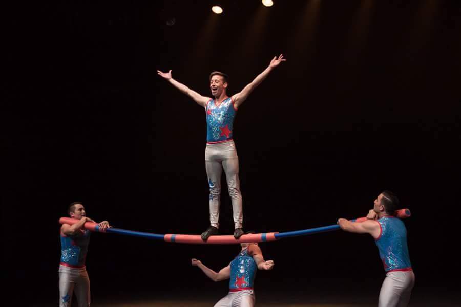 Es circo tradicional, donde los actores con destreza técnica, sincronía y humor entregan un espectáculo con números de alto nivel en las técnicas de: